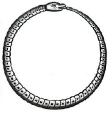 o ouroboros simboliza o ciclo da evolução voltando-se sobre si mesmo. O símbolo contém as ideias de movimento, continuidade, auto fecundação e, em consequência, eterno retorno.